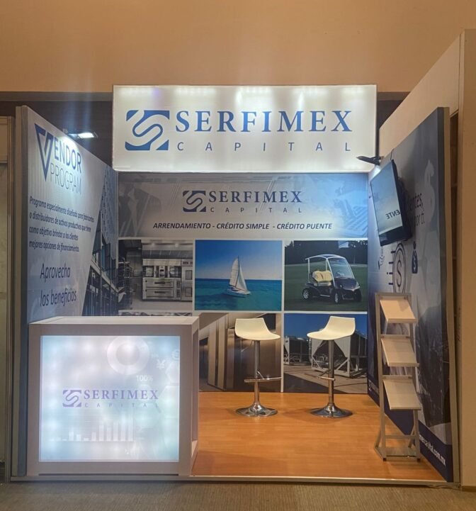 Agradecemos la confianza de nuestros clientes, Serfimex & MIB para el Diseño de su Stand utilizando nuestro nuevo sistema Maxima de 80 con arte en Tela sublimada y Lona Mate respectivamente en Exphotel 2021.