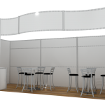 3.5 metros de altura Incluye: 8 imágenes de 194×96 cm. 3 imágenes de 194×38 cm. 2 lonas de 194×146 cm. 2 imágenes de 107×86 cm. 2 imágenes de 217×86 cm. 1 imágen de 95x86cm 1 counter con área de guardado y puerta.1 Pantalla de plasma 32” c/ soporte de pared. Opcional 12m2 de piso laminado 2 mesas periqueras c/ 6 sillas.