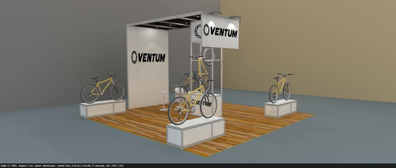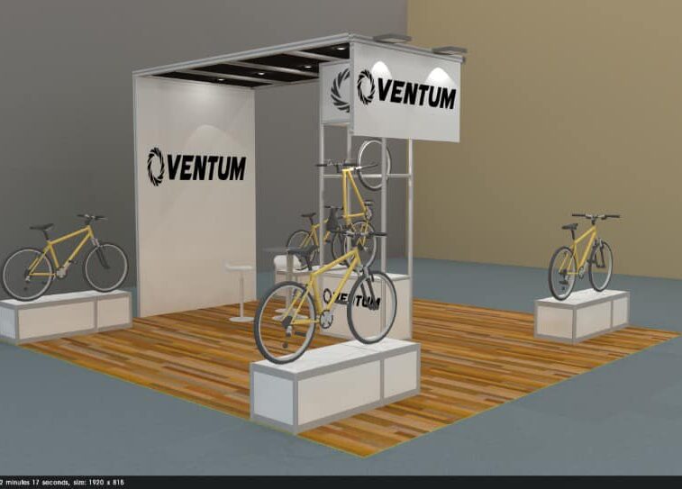 Diseño de Stand utilizando sistema Maxima para Bicicletas Ventum en el Centro de Convenciones de Cozumel.